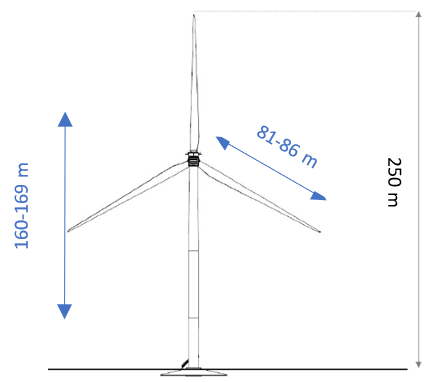 Navrhujeme využití VTE o výkonu 7,2 MW, typ Vestas V172 (nebo alternativně nebo Vestas V162 či Enercon E-175). Číslo označuje průměr rotoru. Navrhujeme stožár o výšce 164 m s poloměrem rotoru 86 m.