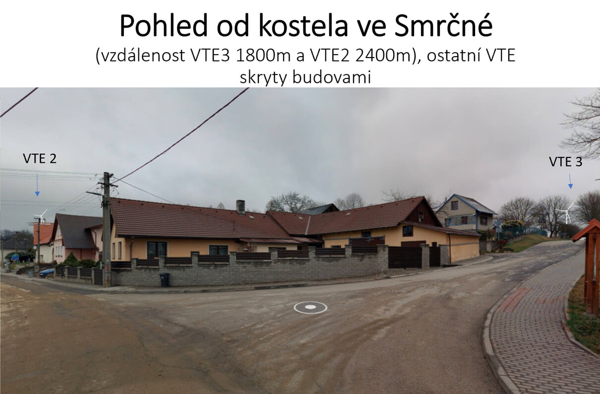 Ze Smrčné budou některé VTE částečně vidět, většinově budou zakryty vegetací, svahem nebo budovami.